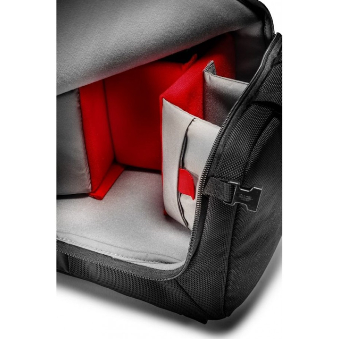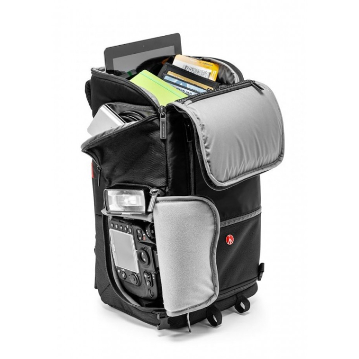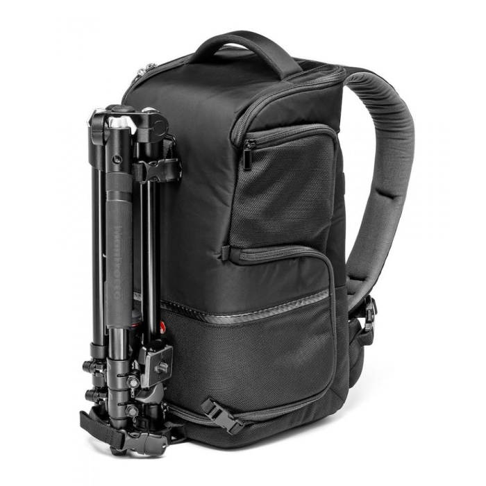 Manfrotto Advanced Tri M dễ mang theo nhiều cách thức khác nhau, làm từ chất liệu bền bỉ cao, chắc chắn. Sức chứa gồm một máy ảnh CSC hoặc DSLR kèm ống kính 24-70/2.8 và thêm đến 3 ống kính phụ và đèn flash. Với dạng đeo chéo, bạn có thể dễ dàng xoay túi sang một bên để tiếp cận thiết bị của mình trong những khoảnh khắc quan trọng giữa buổi chụp. Ba lô máy ảnh này được chia làm 2 khoang gồm khoang dưới dành riêng cho thiết bị nhiếp ảnh của bạn và khoang trên cho vật dụng cá nhân; các khoang ngăn lót đệm và có thể điều chỉnh cho phép bạn sắp xếp và giữ thiết bị an toàn mỗi lần bạn di chuyển. Có ngăn riêng để đựng thẻ nhớ và một ngăn cho máy tính bảng 10 inch. Dây treo tripod thông minh phía trước cho phép treo tripod nhỏ. Ba lô kèm theo một áo mưa phù hợp di chuyển trong điều kiện thời tiết bất lợi.