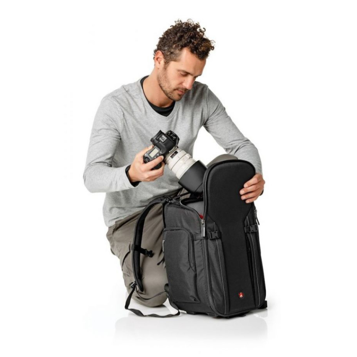 Manfrotto Backpack 20 cho phép bạn mang theo toàn bộ setup với bạn, đựng vừa máy ảnh DSLR và những phụ kiện cần thiết gồm một ống kính 70-200/2.8, một thân máy phụ, 4 ống kính phụ, flash, tripod và các phụ kiện khác. Ba lô nổi bật với khoang chứa và lối mở rộng khuếch đại tầm quan sát và dễ dàng cho bạn tiếp cận các thiết bị đựng trong ba lô. Một ngăn bổ sung nhỏ cho phép đựng laptop 13 inch. Ba lô này trang bị hệ thống bảo vệ máy ảnh của Manfrotto (CPS) đảm bảo giữ cho thiết bị của bạn an toàn. Thiết kế tiên tiến cố định các thiết bị tại chỗ, được lót đệm mềm mại và an toàn trong qua trình bạn di chuyển. Vỏ ngoài được làm từ cấu trúc đa lớp cực bền góp phần tăng sự bền bỉ, cứng cáp. Ba lô có đi kèm áo mưa phù hợp di chuyển trong thời tiết bất lợi.