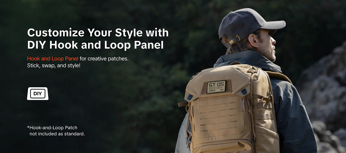 Khả năng mở rộng ngoại vi: Tùy biến cao nhờ tích hợp hệ thống đai treo MOLLE và miếng dán Velcro bên ngoài balo.