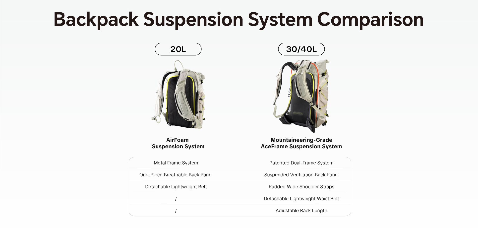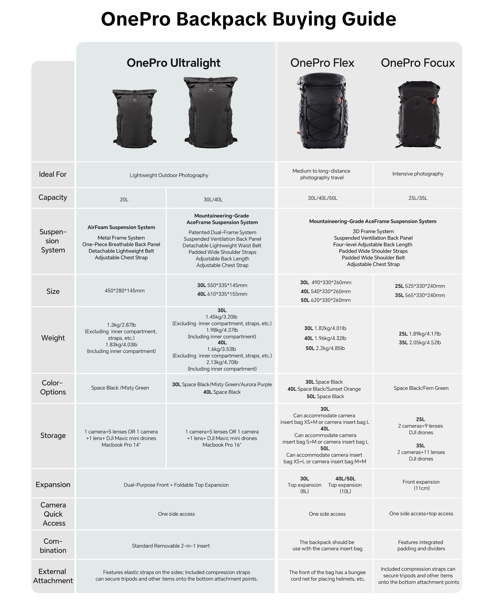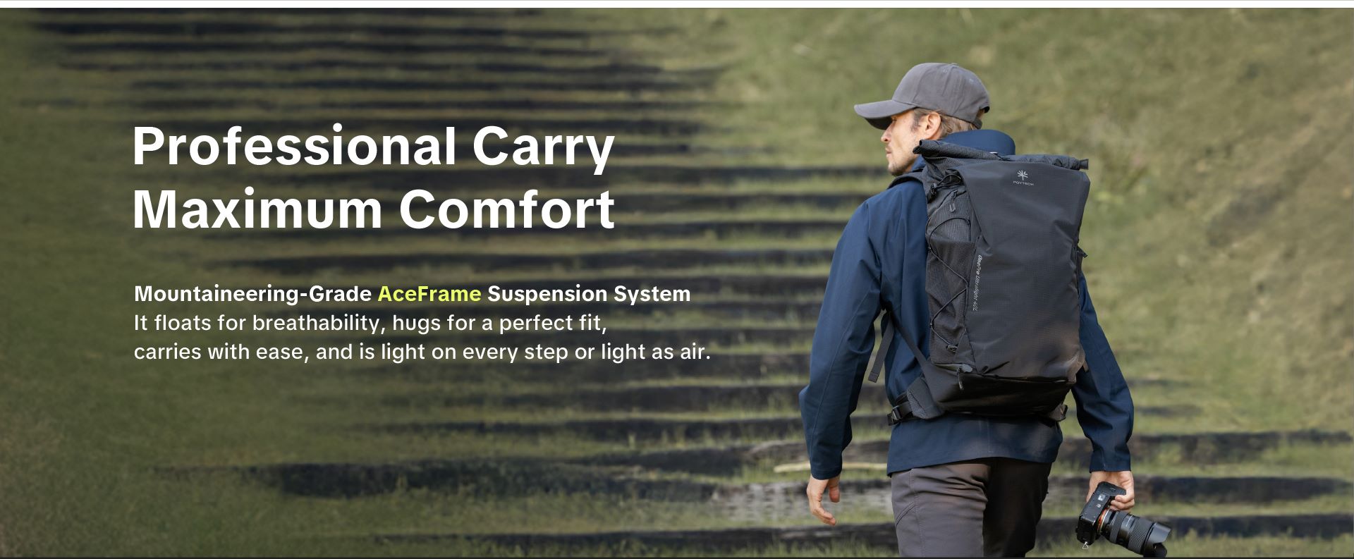 PGYTECH OnePro Ultralight là dòng balo máy ảnh dã ngoại chuyên dụng, ưu tiên sự linh hoạt với trọng lượng siêu nhẹ và khả năng bảo vệ vượt trội. Điểm nhấn cốt lõi của sản phẩm là hệ thống trợ lực chuyên nghiệp: phiên bản 20L sử dụng công nghệ AirFoam thoáng khí, trong khi phiên bản 30L/40L được trang bị hệ thống khung AceFrame chuẩn leo núi (Mountaineering-Grade) với tấm lưng lưới treo giúp tản nhiệt và giảm áp lực tối đa lên cột sống khi di chuyển đường dài.