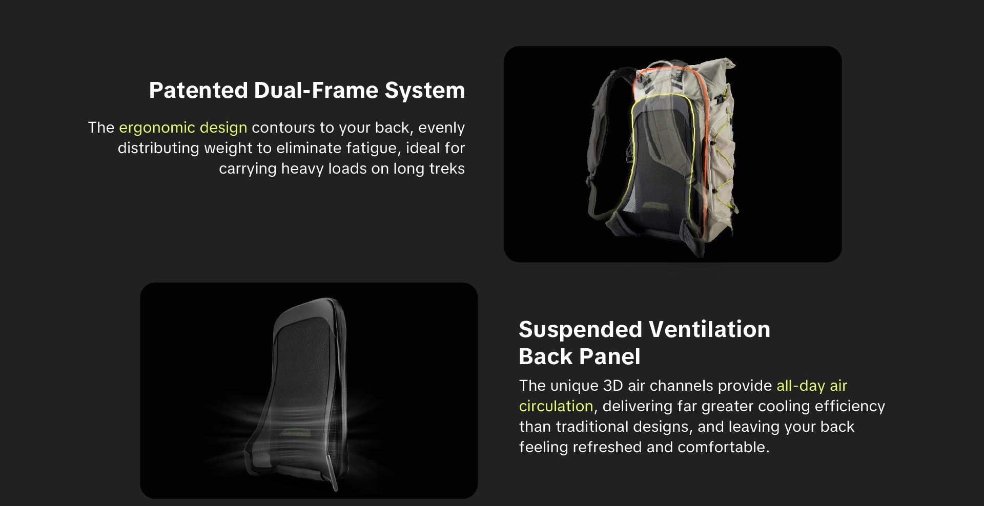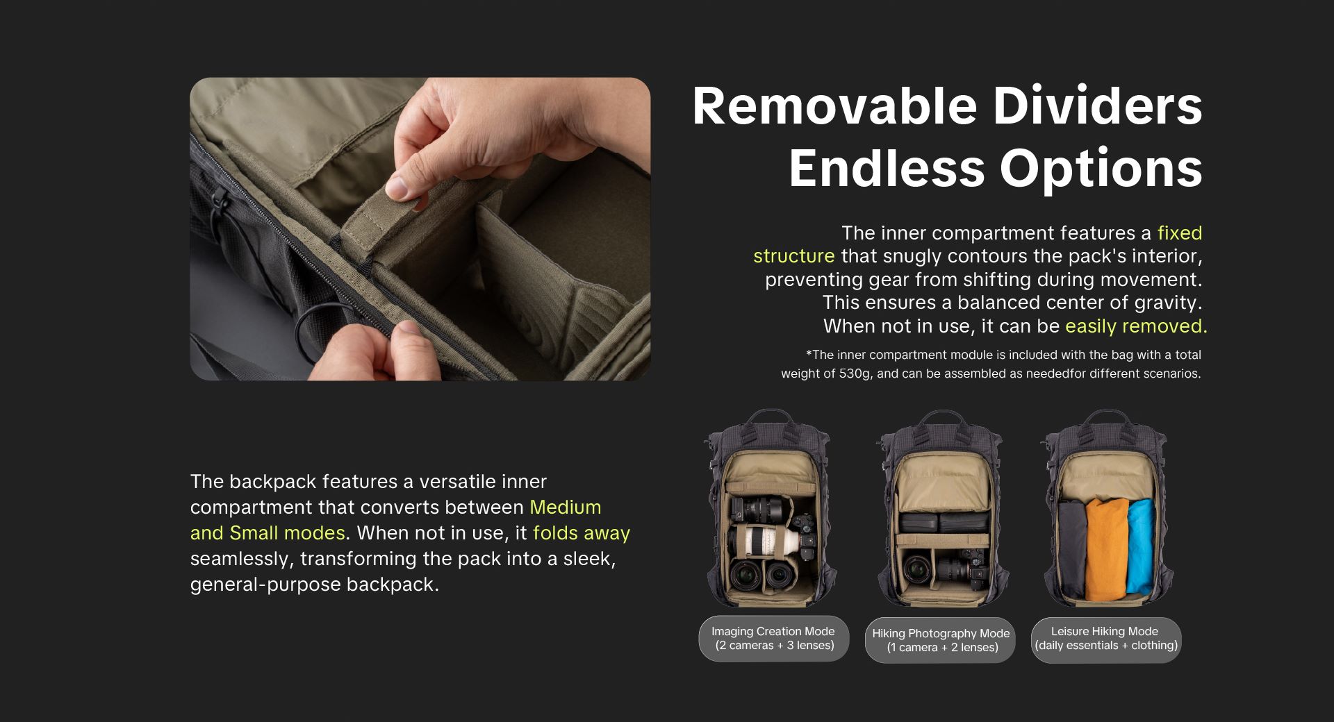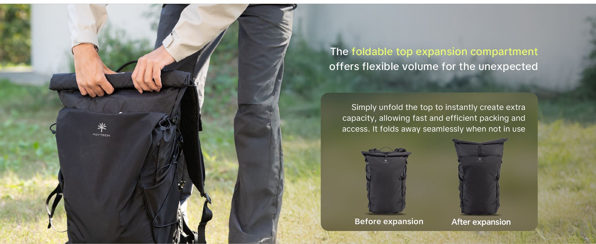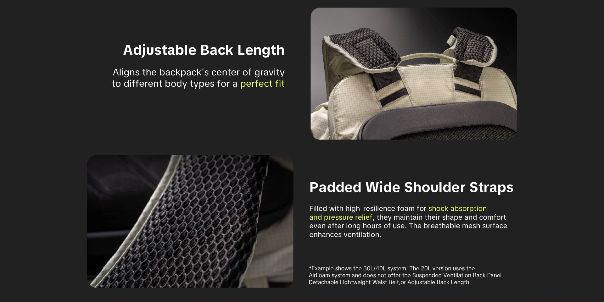 PGYTECH OnePro Ultralight là dòng balo máy ảnh dã ngoại chuyên dụng, ưu tiên sự linh hoạt với trọng lượng siêu nhẹ và khả năng bảo vệ vượt trội. Điểm nhấn cốt lõi của sản phẩm là hệ thống trợ lực chuyên nghiệp: phiên bản 20L sử dụng công nghệ AirFoam thoáng khí, trong khi phiên bản 30L/40L được trang bị hệ thống khung AceFrame chuẩn leo núi (Mountaineering-Grade) với tấm lưng lưới treo giúp tản nhiệt và giảm áp lực tối đa lên cột sống khi di chuyển đường dài.