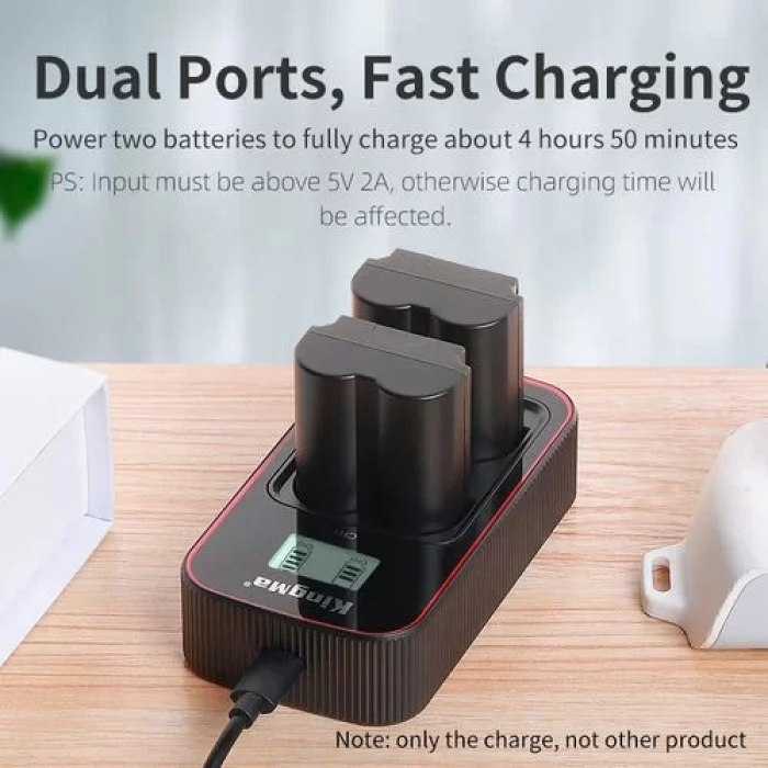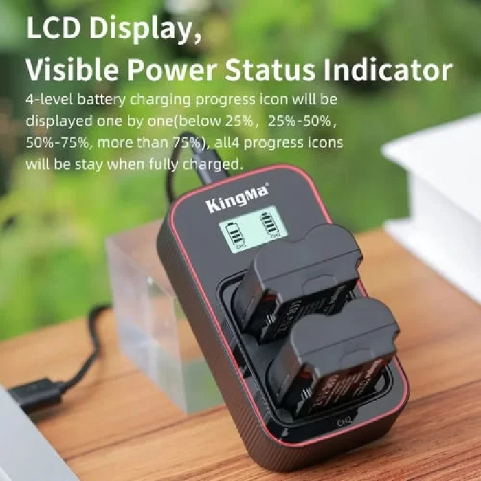 • Sản phẩm: Bộ sạc pin KingMa cho máy ảnh Fujifilm GFX50SII NP-W235 với màn hình LCD kép và khả năng sạc pin qua cổng USB.