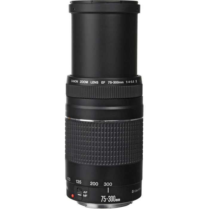 Nhỏ gọn và trọng lượng nhẹ 4x ống kính zoom lý tưởng chụp hình các môn thể thao, chân dung, và các loài động vật hoang dã. Ống kính Canon 75-300mm rất phù hợp cho các môn thể thao và các ứng dụng khác đòi hỏi phải nhanh chóng AF. Một động cơ DC được sử dụng AF. Phiên bản này chia sẻ kích thước nhỏ gọn, gần tập trung phạm vi, và khả năng tương thích phụ kiện của ống kính . Đối với các tài tử tiên tiến, phạm vi 75-300 là lý tưởng như là một mục đa năng vào tele chụp ảnh.