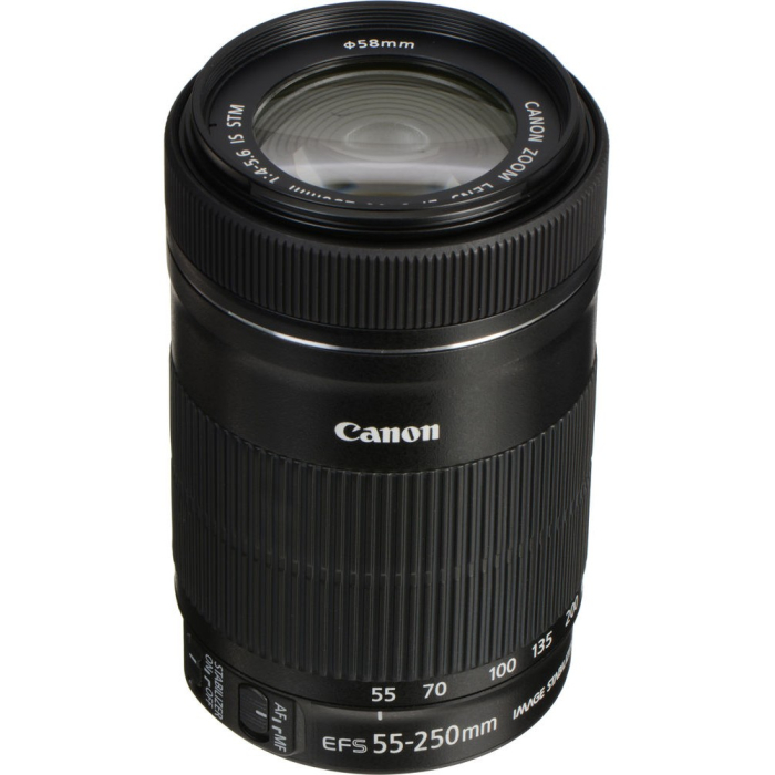 Ống kính Canon EF-S 55-250mm F/4-5.6 IS STM là một óng kính zoom dài rộng cung cấp dải tiêu cự tương đương 88-400mm theo định dạng 35mm, cho phép chụp chân dụng đến chụp tele và các đối tượng chụp ở khoảng cách xa. Tích hợp hệ thống ổn định hình ảnh IS giúp giảm thiểu tình trạng rung lắc máy ảnh lên đến 3.5 bước và hỗ trợ đắc lực trong khi chụp hình trong điều kiện ánh sáng yếu.