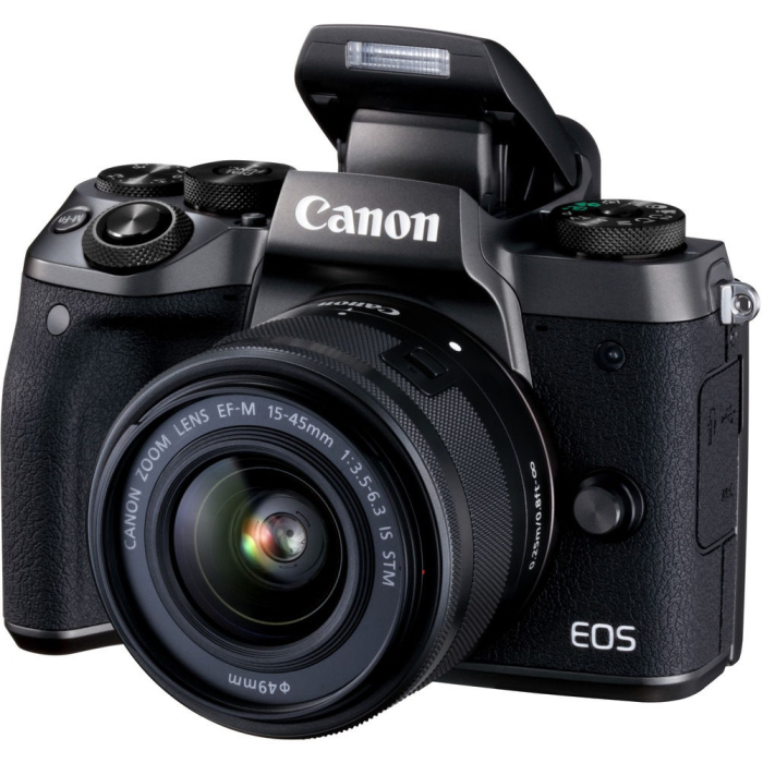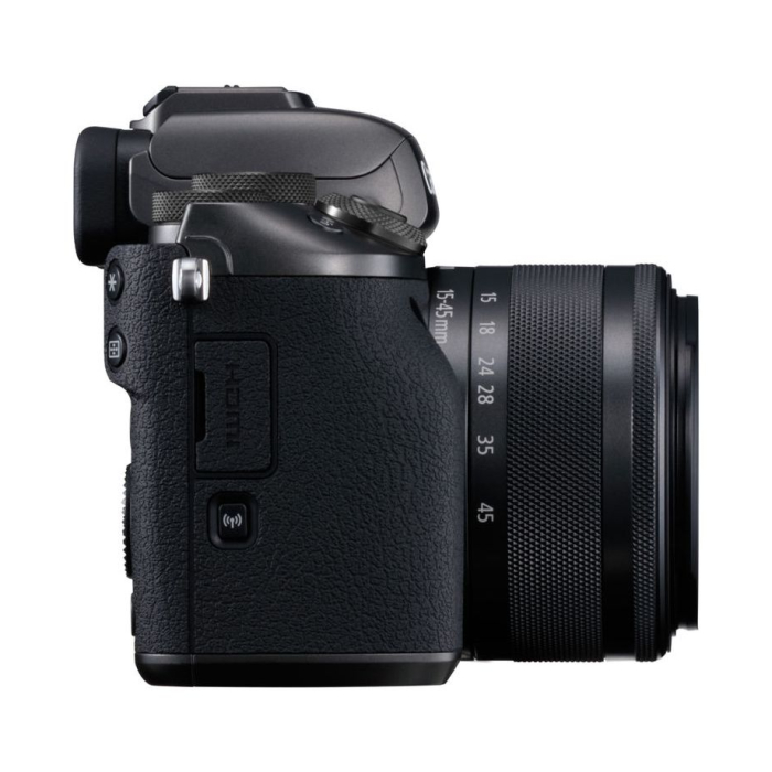 Đi kèm với thân máy Canon EOS M5 là ống kính zoom tiêu chuẩn EF-M 15-45mm F/3.5-6.3 IS STM cung cấp phạm vi tiêu cự tương đương 24-72mm theo định dạng 35mm. Tích hợp 3 thấu kính phi cầu giúp giảm thiểu tối đa quang sai màu và biến dạng trong suốt dải zoom, đồng thời giảm thiểu hiện tượng bóng ma và lóe sáng. Đặc biệt hệ thống chống rung quang học IS trên ống kính cung cấp lên đến 3.5 điểm dừng cho phép bạn chụp cầm tay với hình ảnh sắc nét và khả năng lấy nét tự động nhanh, mượt và yên tĩnh.