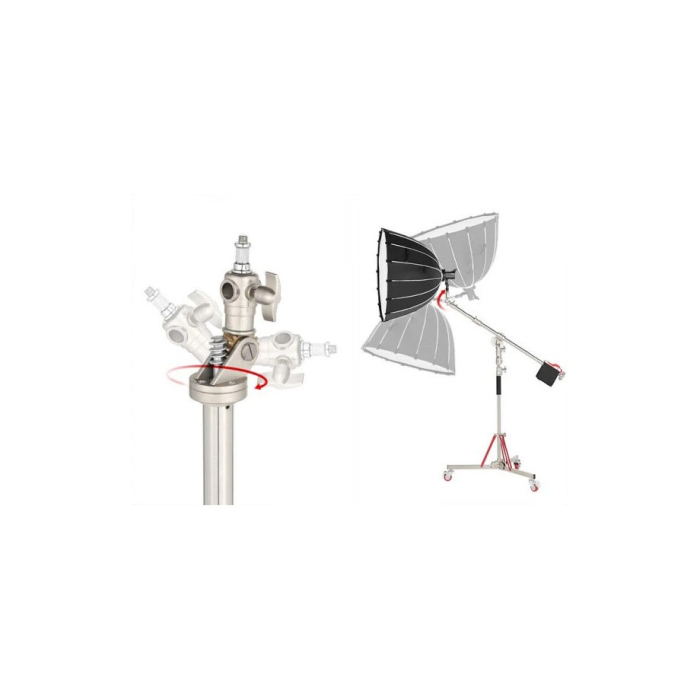Sở hữu chiều cao 123cm đến 220cm và sức tải lên đến 20kg, chân đèn BS-3060 Plus đáp ứng mọi nhu cầu của studio chuyên nghiệp. Cánh tay vững chắc vào giữa cột trung tâm, làm cho nó dễ dàng hơn để mở ra trong studio. Đặc biệt điều chỉnh được hướng đèn thông qua bánh xe điều chỉnh, sức tải lớn di chuyển nhẹ nhàng với bộ bánh xe mượt mà.
