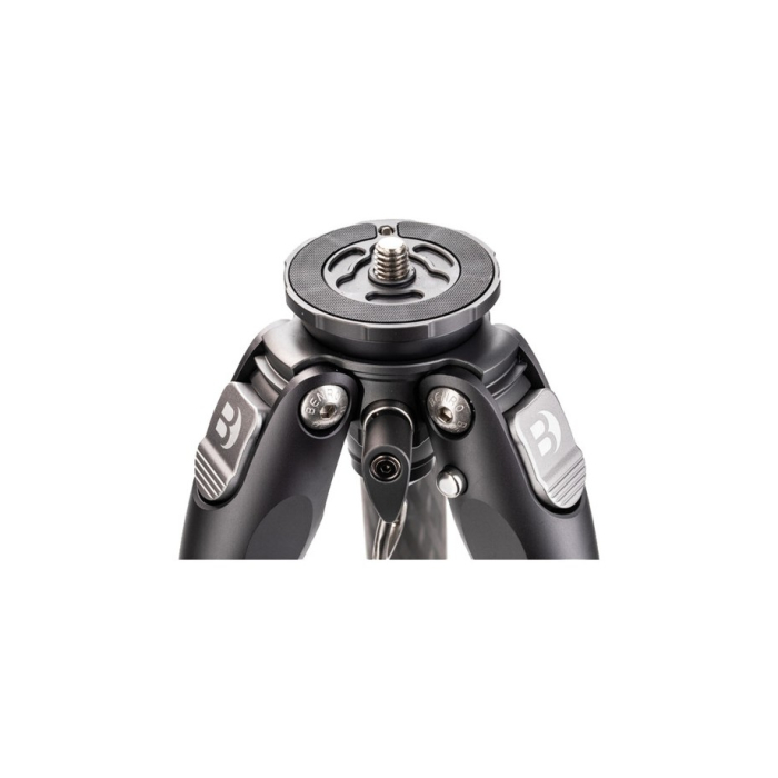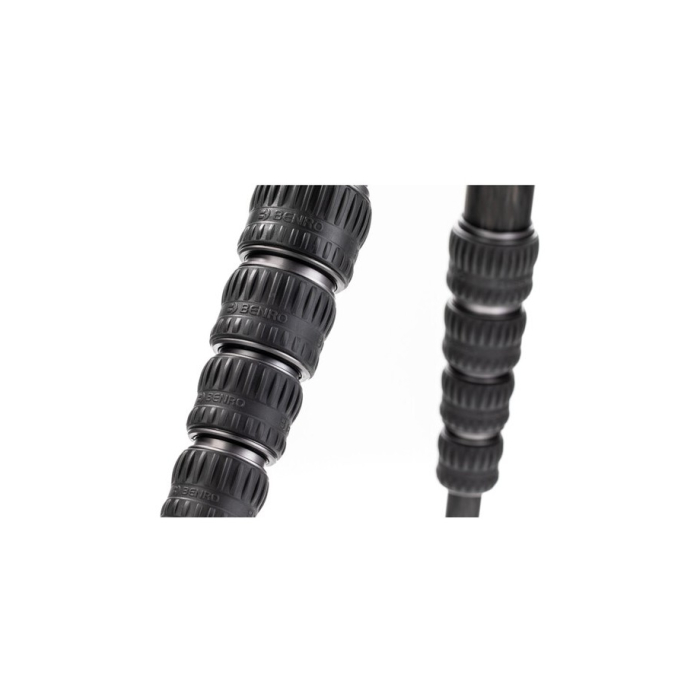 Chân sợi carbon sử dụng khóa chân khóa vặn để thiết lập nhanh chóng và an toàn. Tích hợp vít gắn phụ kiện 1/4"-20. Các chân có chuyển động độc lập với ba góc khóa và hệ thống khóa bằng nút bấm. Đế chân cao su có ba bề mặt tiếp xúc riêng biệt cung cấp độ bám dù chân thẳng đứng, nghiêng hoặc gần như nằm ngang khi thiết lập. Có thể tháo chân cao su và thay thế bằng chân gai đi kèm nếu muốn.