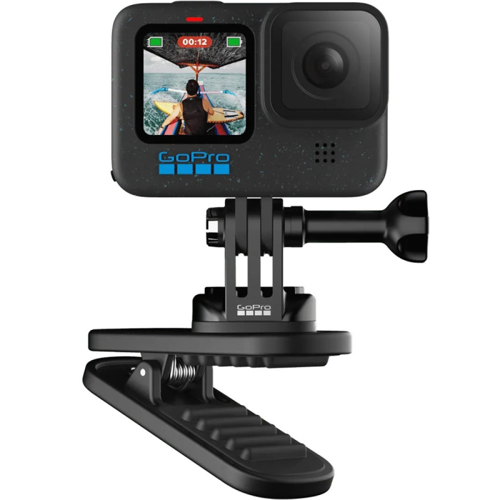 Kẹp xoay từ tính GoPro Magnetic Swivel Clip hỗ trợ kẹp máy ảnh GoPro HERO hoặc MAX của bạn vào quần áo, dây đeo, bàn hoặc bất kỳ bề mặt nào. Kẹp có một kẹp lò xo chịu lực cao để kết nối chắc chắn với một bề mặt và mặt ngoài của kẹp có bề mặt từ tính để kết nối máy quay của bạn. Máy quay kết nối với khóa gắn từ tính và cố định bằng vít vặn, đồng thời cho phép bạn xoay máy quay 360°.