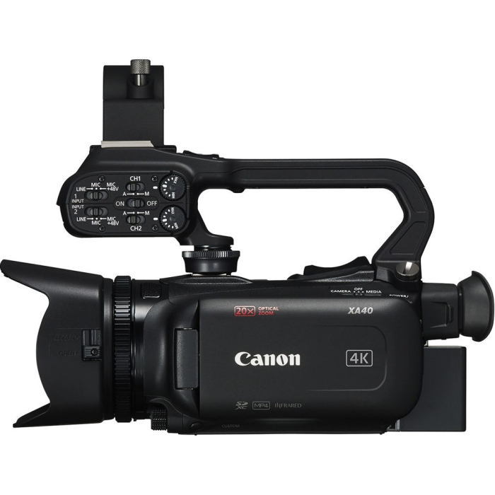 Canon XA40 là máy quay nhỏ gọn, công thái học, trang bị khả năng quay phim đến độ phân giải UHD 4K trên cảm biến CMOS 1/2.3", hai đầu vào âm thanh XLR, một đầu ra mini-HDMI phù hợp với dòng ENG để sản xuất theo phong cách tài liệu hoặc báo chí.