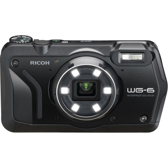 Ricoh WG-6 là dòng camera nhỏ gọn thách thức mọi loại thời tiết, nổi trội với thiết kế cứng cáp ấn tượng kết hợp nhiều chế độ ghi hình và tính năng hình ảnh linh hoạt. Cấu trúc bên ngoài bền bỉ với khả năng chống nước đến 20m, chống sốc từ độ cao đến 2.1m cũng như chống đóng băng, chống vỡ, chống bụi và chống khử hóa chất. Về mặt hình ảnh, WG-6 trang bị cảm biến ảnh BSI CMOS 20MP cho phép chụp ảnh tĩnh chất lượng cao trong phạm vi nhạy sáng ISO 125-6400 và quay video 4K30 UHD, hỗ trợ các chế độ chống rung Movie SR+ và Movie SR giúp ổn định video.