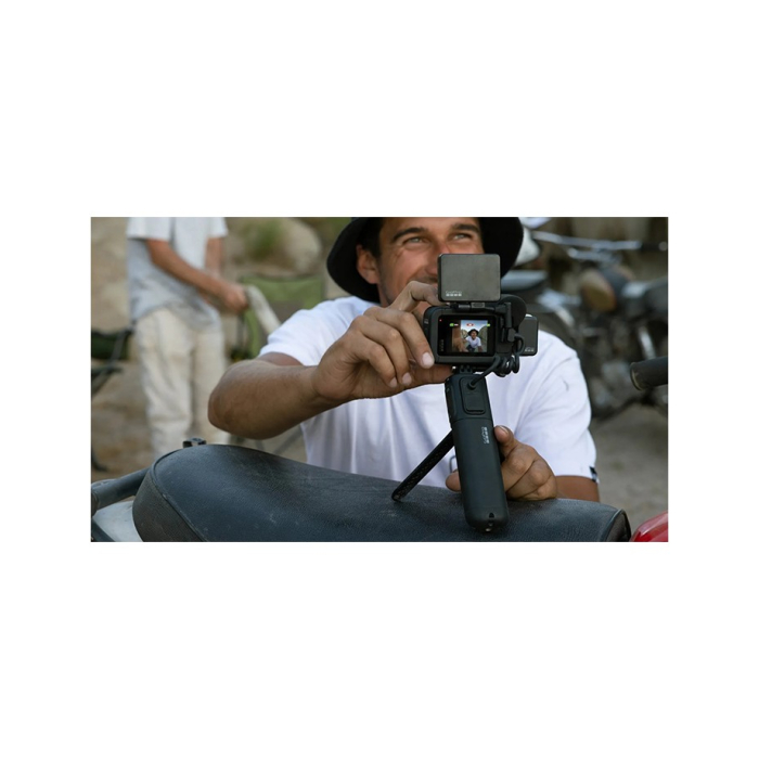 Có các nút trên tay cầm cho phép bạn điều khiển không dây các cài đặt và điều khiển máy ảnh từ khoảng cách lên đến 30m bằng một tay. Chân lật ra cho phép bạn sử dụng báng cầm như chân máy. Các đặc điểm nổi bật khác bao gồm đầu ra USB-C để sạc phụ kiện, khả năng chống chịu thời tiết và khả năng tương thích với tất cả các mod và phụ kiện của GoPro.