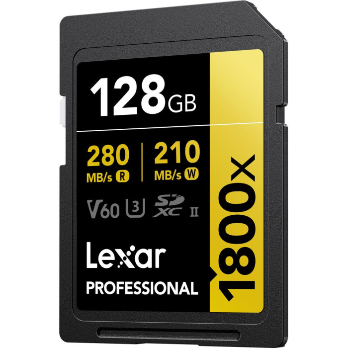 Thẻ nhớ SDXC Lexar 128GB 280MB/s Professional 1800x UHS-II Gold Series thuộc dòng thẻ nhớ SDXC 1800x UHS-II Gold Series chuyên nghiệp, hỗ trợ các chức năng nâng cao cho máy ảnh kỹ thuật số như chụp liên tục và chụp nhanh, cũng như chụp ảnh RAW và JPEG. Thẻ nhớ này cũng rất phù hợp để quay video, bao gồm video 4K, 3D và Full HD, đồng thời có thể đạt tốc độ đọc tối đa lên đến 280MB/s và tốc độ ghi tối đa lên đến 210MB/s. Nhờ xếp hạng loại tốc độ V60, tốc độ ghi tối thiểu được đảm bảo không giảm xuống dưới 60MB/s.