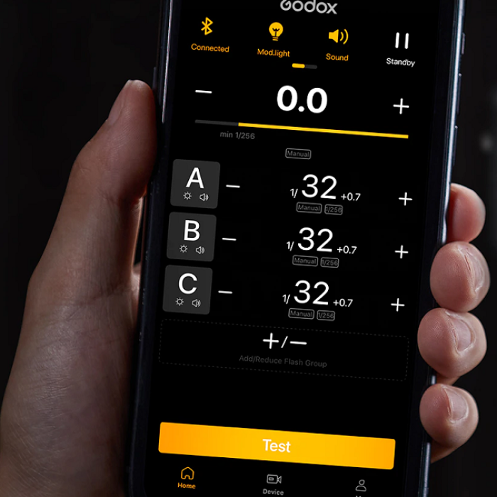 • Dùng App Godox Photo thông qua Bluetooth để điều khiển từ xa